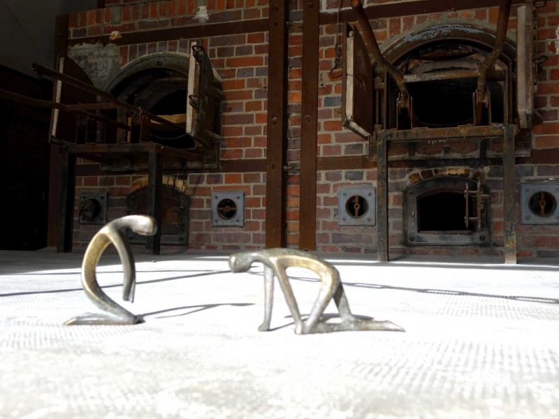 Kurz vor 9 Uhr fahren wir auf den Parkplatz der Gedenkstätte. Ich will die frühe Stunde nutzen, um möglichst ohne andere zu stören, meine Aufnahmen im Krematorium machen zu können. Ich erschrecke, als ich fünf große Busse auf dem Parkplatz sehe. Auf dem Gelände selbst angekommen, eilen wir in die hintere linke Ecke zum Krematorium. Dort sind wir noch lange alleine.